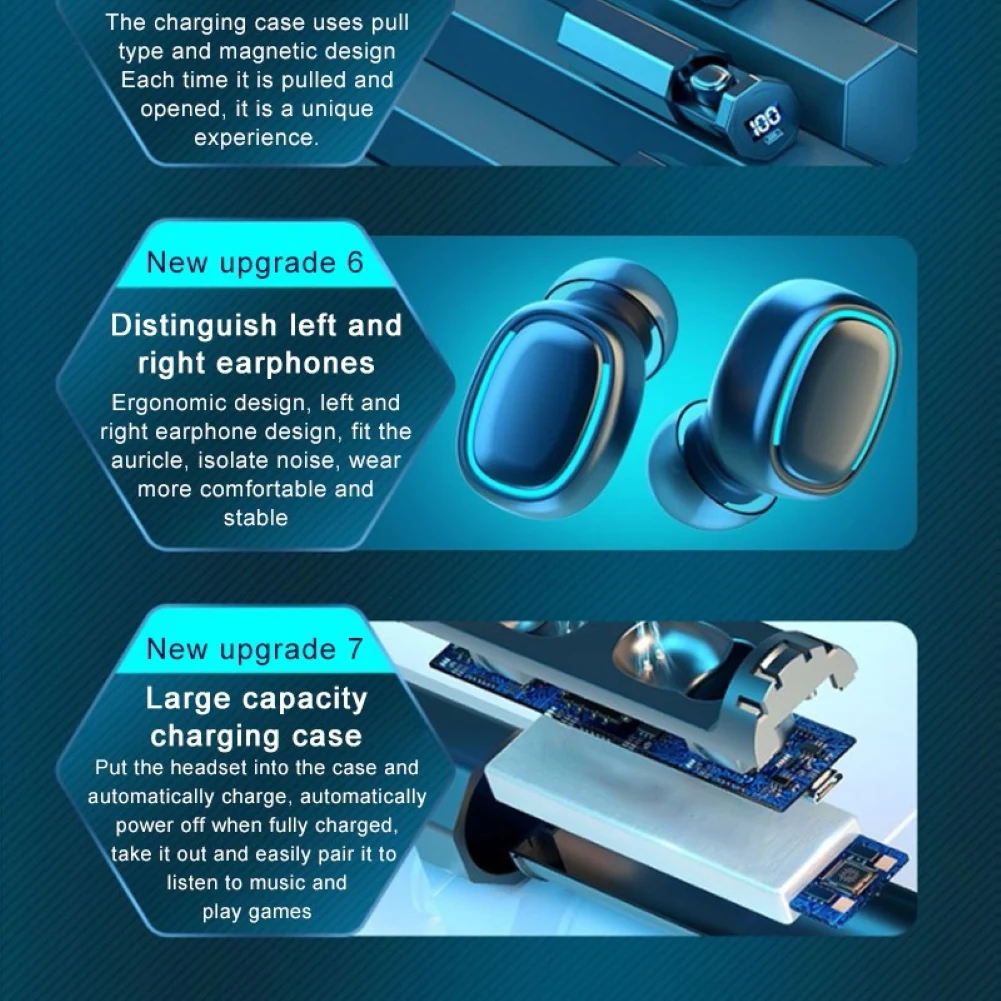 무선 이어폰 채택 블루투스 5.0, 지원 빠르고 안정적인 연결. 사용하기 편리한 똑똑한 접촉 가동.