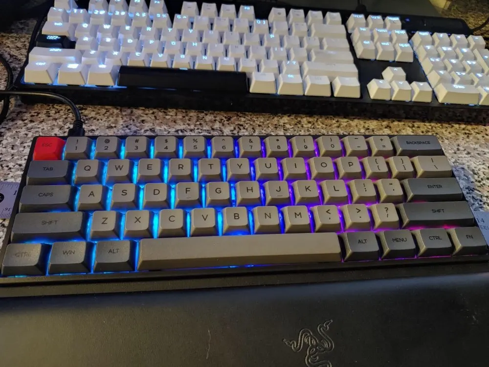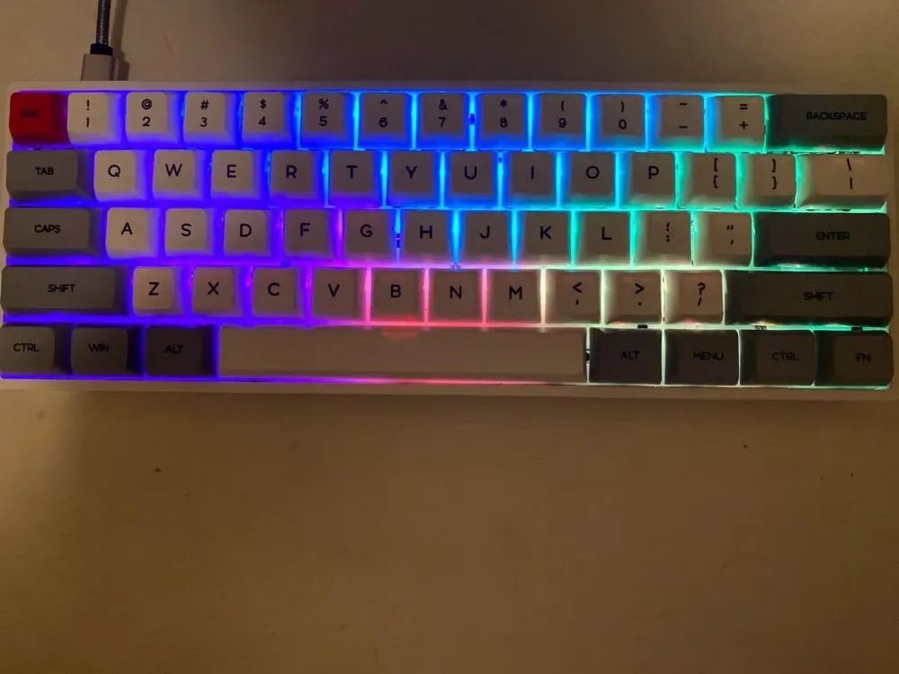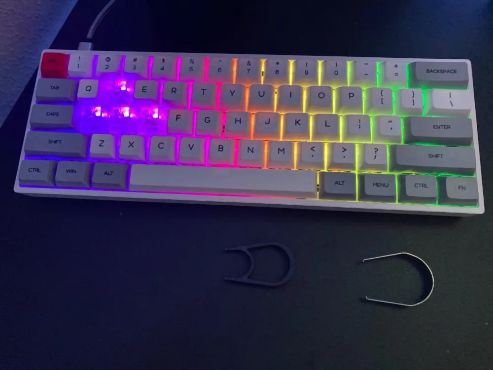 100% 아주 새로운 고품질. 61 기계식 키보드. 100 백만 시간 이상 keystroke 생활, 2 배 더 긴 전통적인 기계, 두 배 색깔 아bs/PBT 중요한 모자, 고전과 유행. 방수/방진/anticorrosion. 3 레이어 프로그램 다운로드 모드 (RGB 버전). 멋진 빛나는 백라이트, 16 백만 컬러 RGB 조명 효과 게이머의 요구를 충족. 소프트웨어 응용 프로그램을 통해 키보드의 백라이트를 사용자 정의합니다. 가장 편안한 게임 경험을 제공하는 인체 공학적 게임 키보드 디자인.