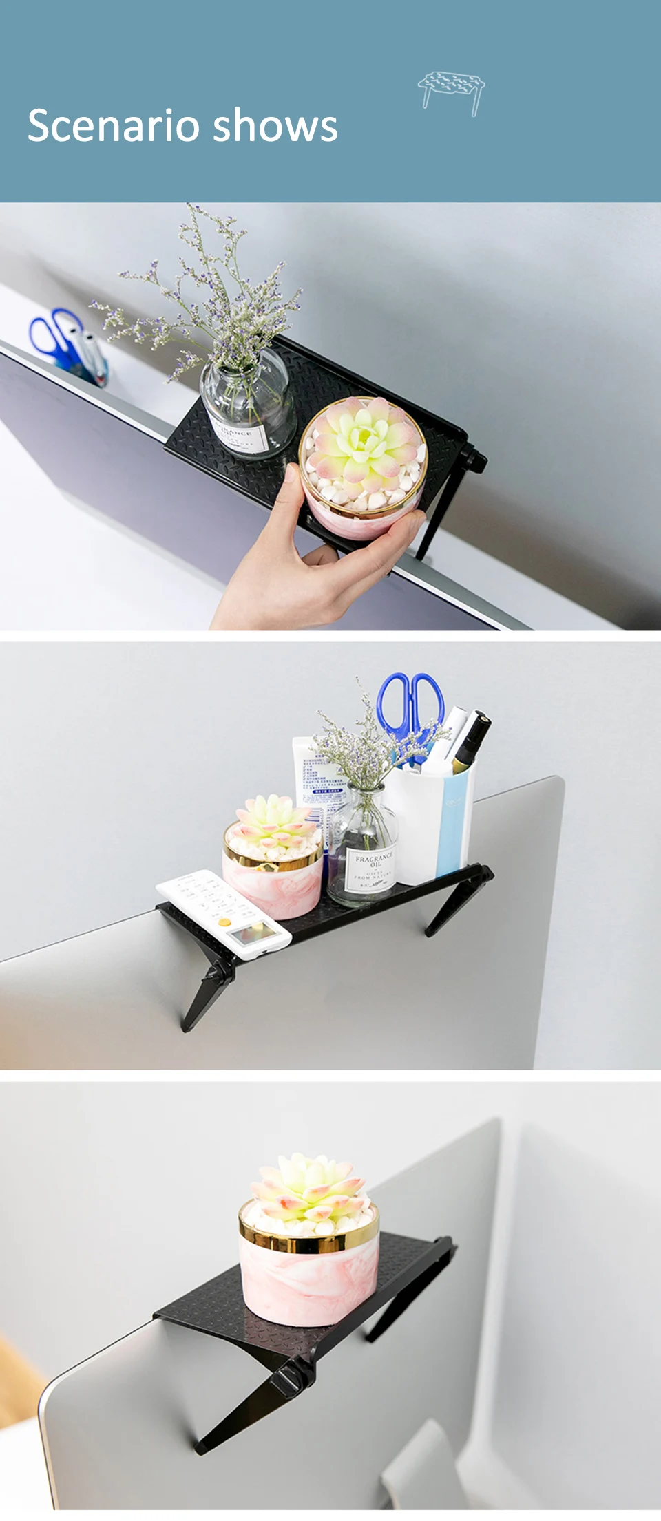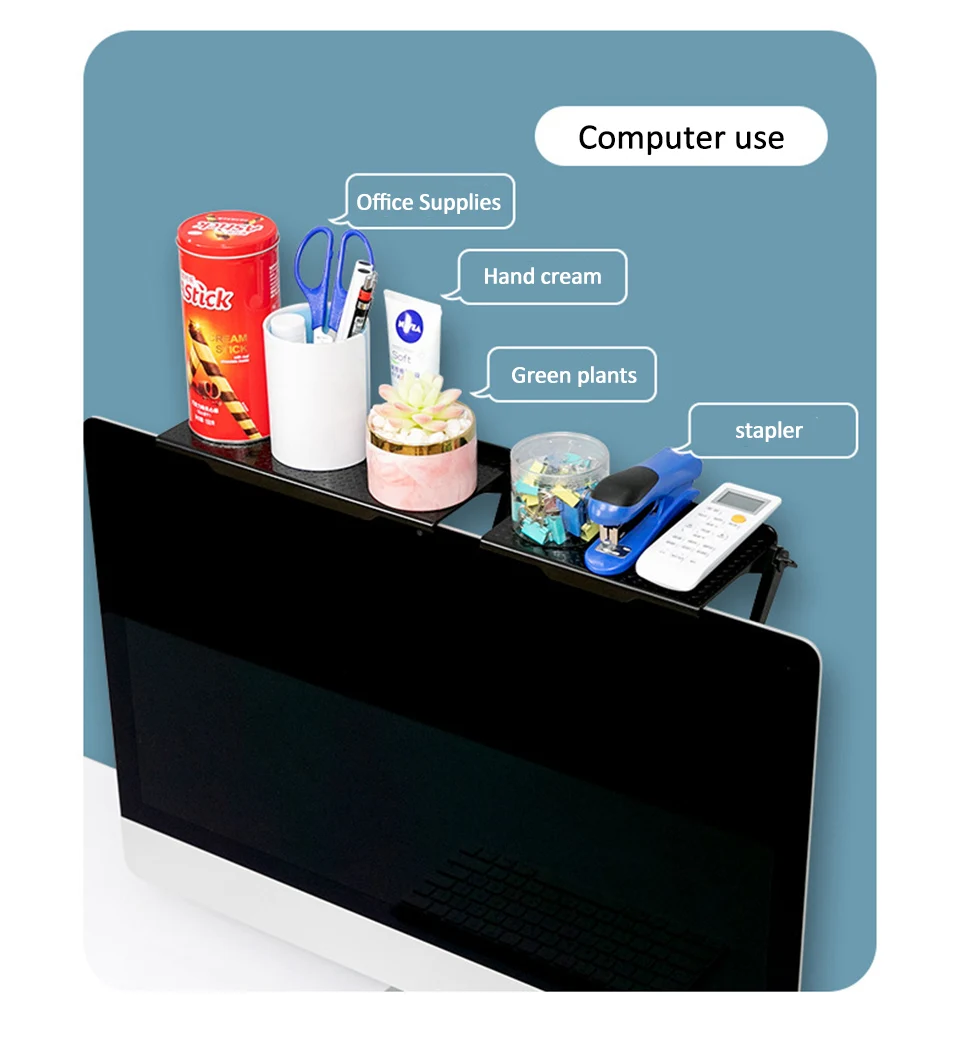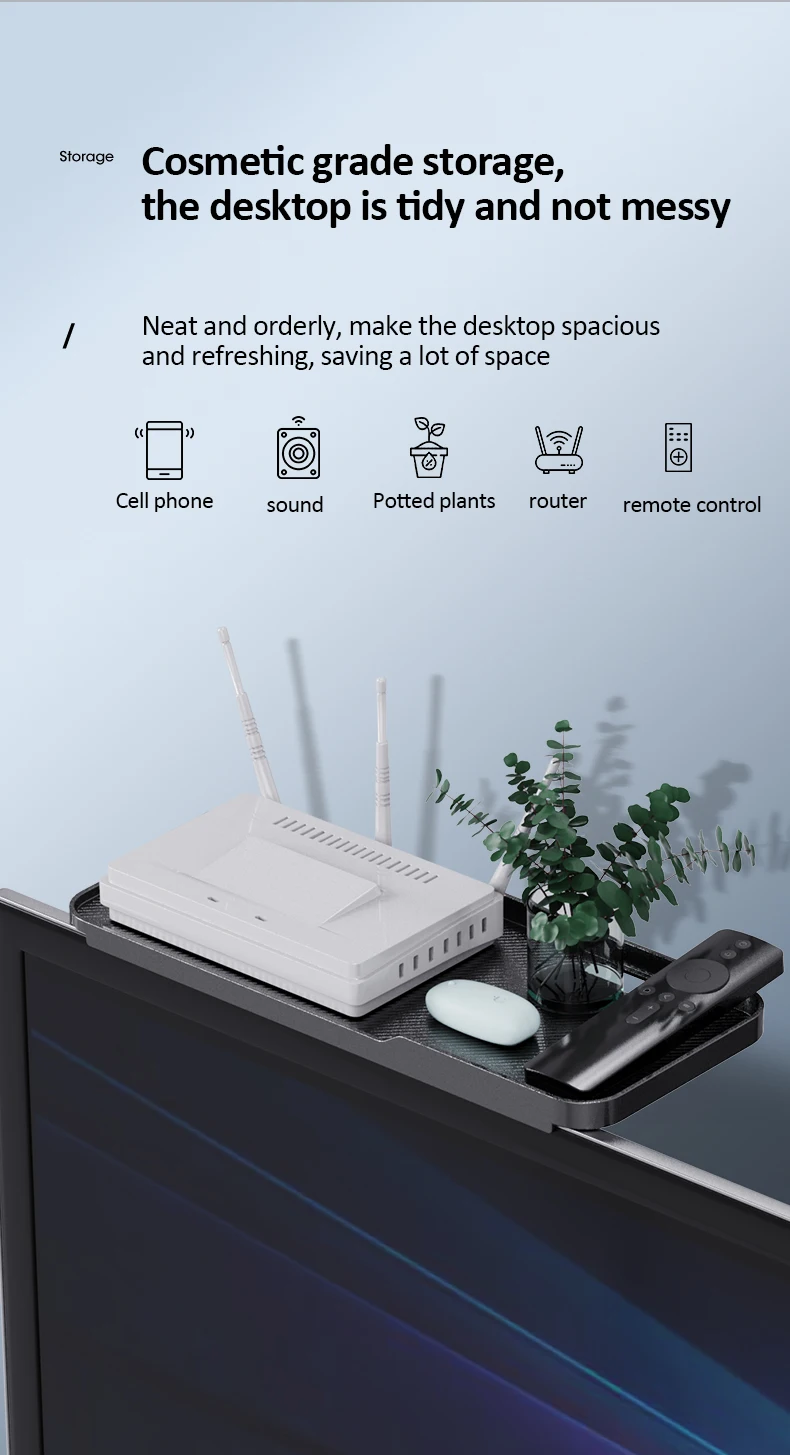 다기능 스토리지 랙 조정 가능한 TV 화면 상단 스토리지 선반 랙 홀더 컴퓨터 모니터 데스크탑 스탠드 TV 랙